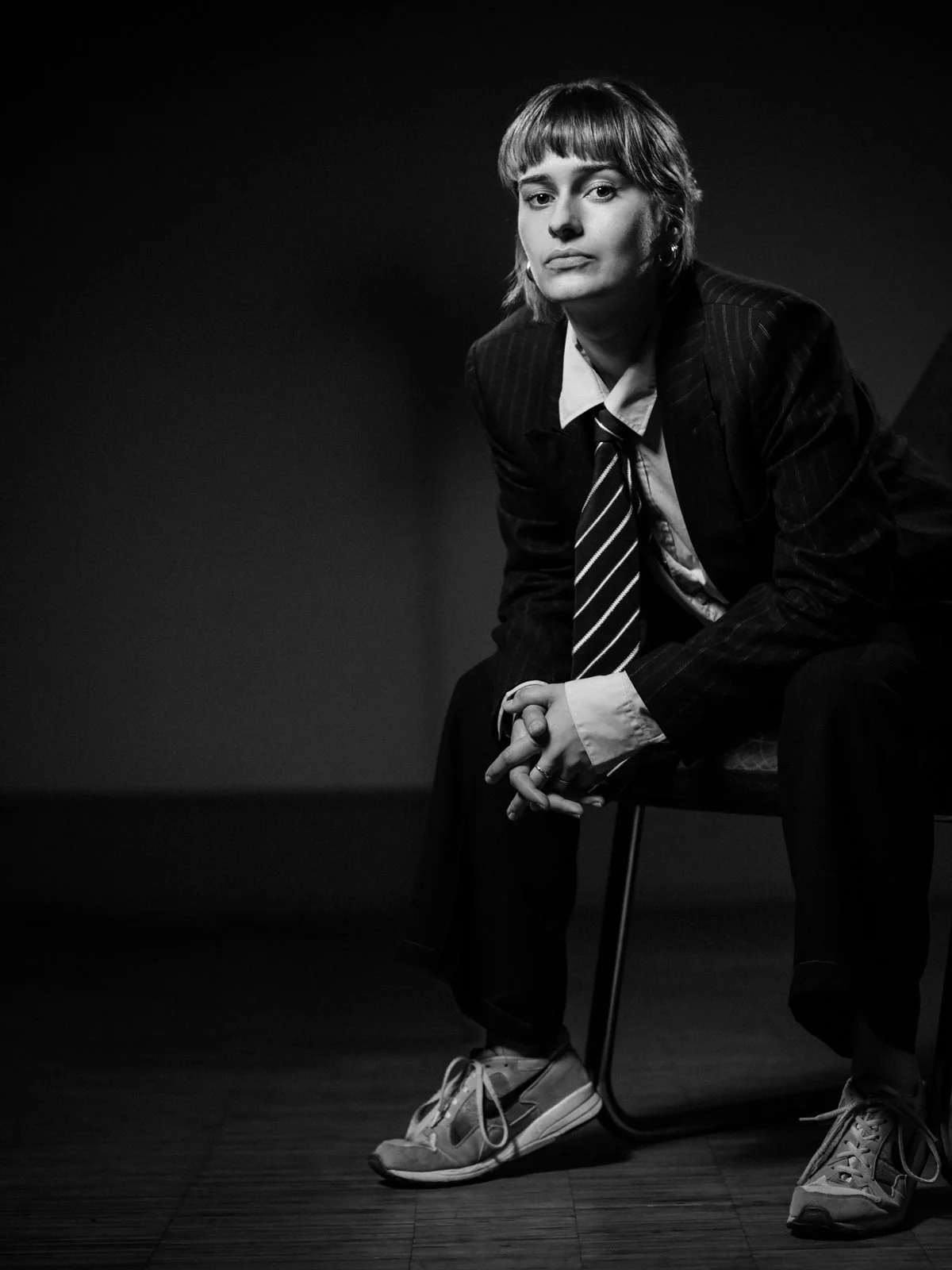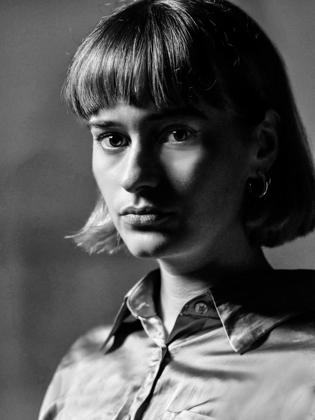 In der digitalen Nachbearbeitung wurde der Kontrast gezielt verstärkt, um die Wirkung der Bilder zu maximieren. Die Porträts zeigen die Studentin in ihrer Natürlichkeit und spiegeln ihre Leidenschaft für die Schauspielerei wider.